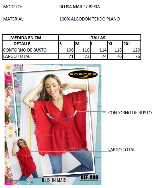 100% Algodón peruano, de fácil caída y suave textura. blusa dama