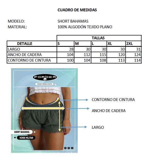SHORT DAMA “BAHAMAS” 100% ALGODÓN, DISEÑADO CON DETALLES DE BORDADOS EN LOS BOLSILLOS Y ELASTISADO ESPECIAL EN LA CINTURA.